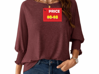 Women’s 3/4 Sleeve Loose Fit Smocked Cuffs Blouses