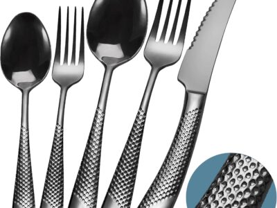Runfly 20 Piece Hammered Black Silverware Set ONLY $39.99 at Amazon