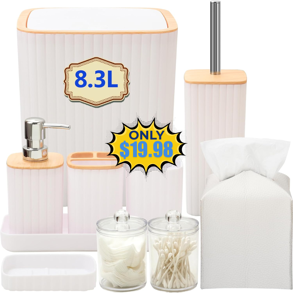 Save 50% off on this 10 Pieces White Bathroom Accessories Set without even using a coupon or promo code! This is awesome price for this product!