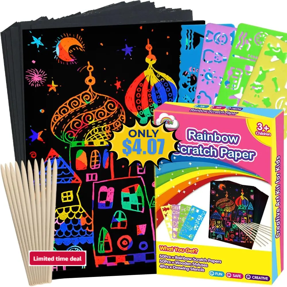 100pcs Rainbow Scratch Paper Art Coupon: Save 18% at DealsFinders