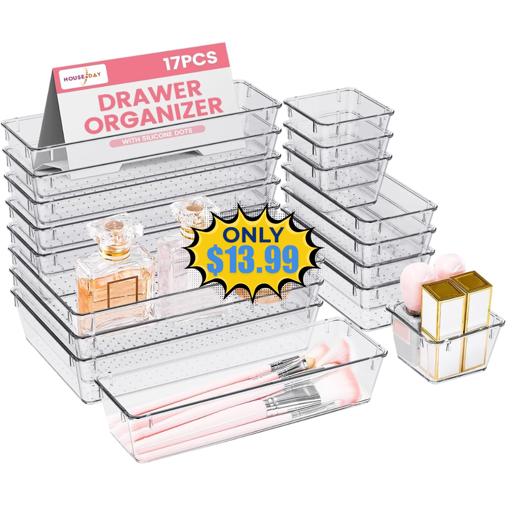 Save 30% off on this 17 PCS, 4-Size Clear Drawer Organizers without even using a coupon or promo code! This is awesome price for this product!