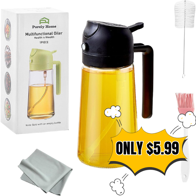 Save on this 2-in-1 Black 16oz/470ml – Olive Oil Sprayer, Leakproof Oil Dispenser without even using a coupon or promo code! This is awesome price for this product!Join our WhatsApp group, Telegram channel, and Facebook Group for kids’ deals, fashion deals, and other crazy deals.
