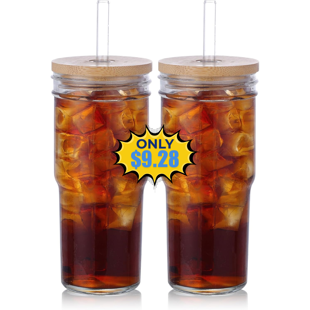 2 Pcs Glass Cups with Lids and Straws Promo: Save with MTVFFTN8 Code