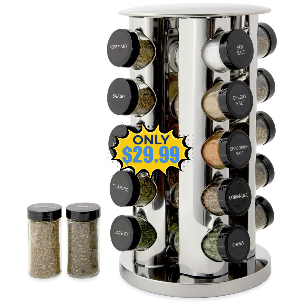 20 Jar Revolving Countertop Spice Rack Sale: Save 63% No Coupon Needed