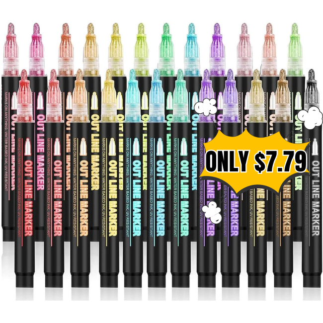24pcs Double Line Outline Markers Sale: Save 50% with Promo Code