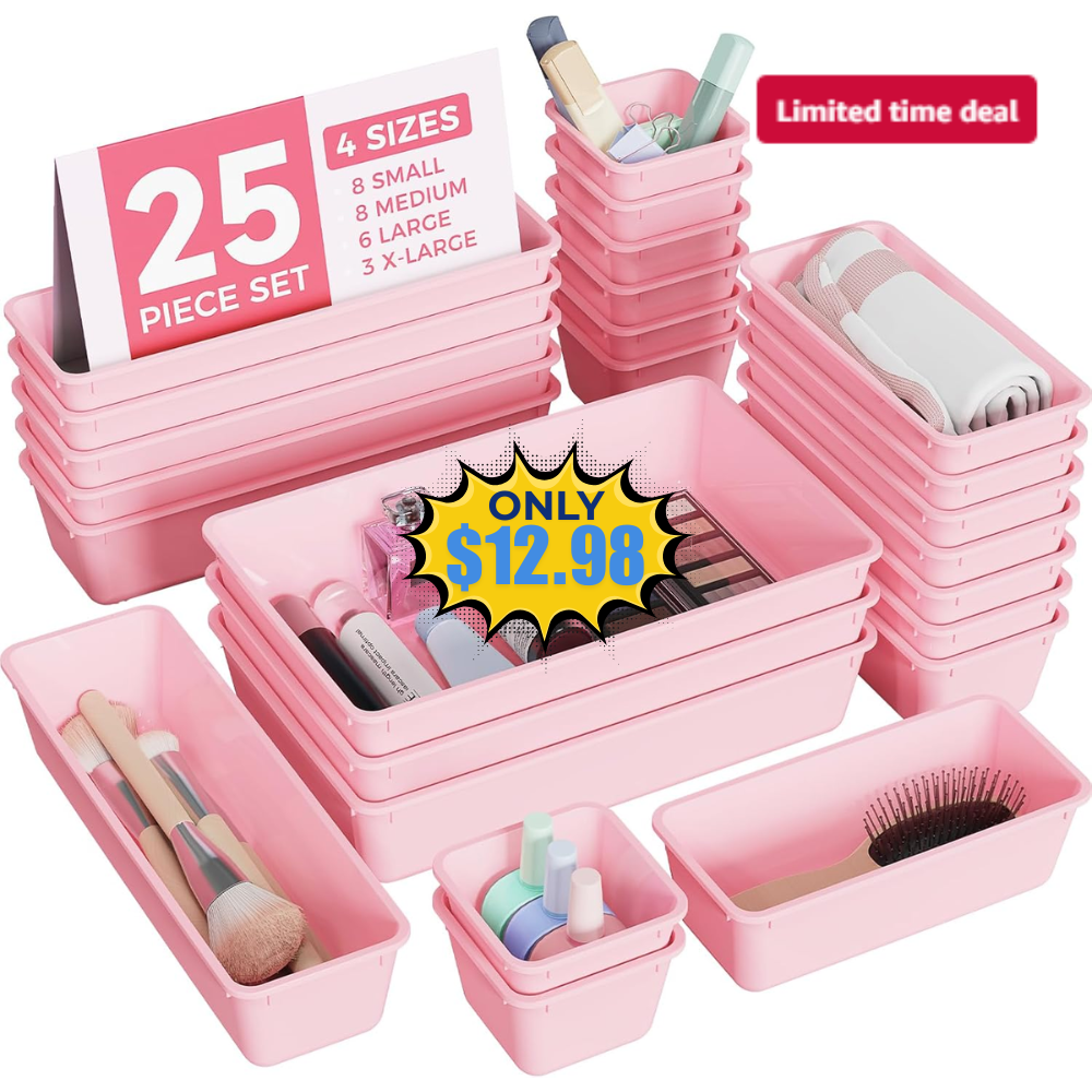 25 PCS Plastic Drawer Organizers Set: 35% Off No Coupon Needed