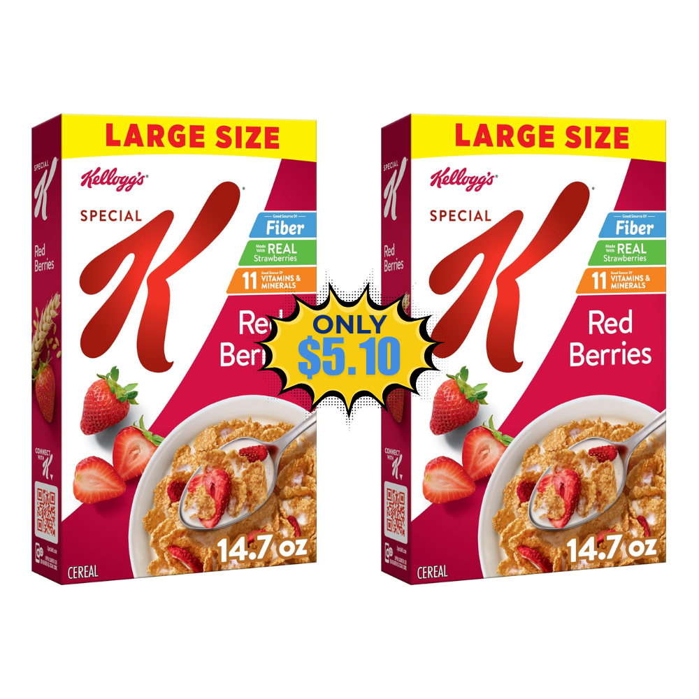 Save on this 2Pack Kellogg’s Special K Red Berries Cereal when you opt to Subscribe & Save (Free to cancel anytime)! This is awesome price for this product! Add 2 in your cart!Join our WhatsApp group, Telegram channel, and Facebook Group for kids’ deals, fashion deals, and other crazy deals.