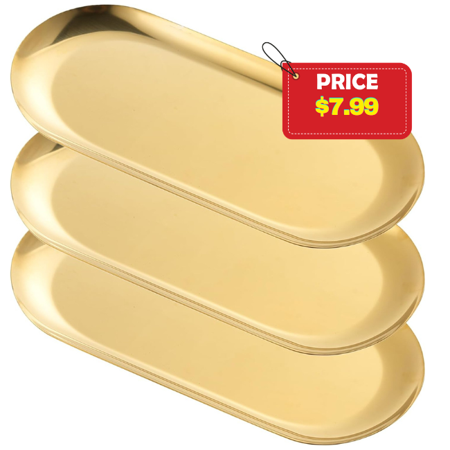 The 3 Pack Gold Trays for Decor is a great product for elevating your decor. You can save on this item without using a coupon or promo code. This is an awesome price for the product. Shop now and get this great deal on the 3 Pack Gold Trays for Decor. It’s a fantastic opportunity to enhance your decor at a discounted price.Grab this deal before it’s gone ?
