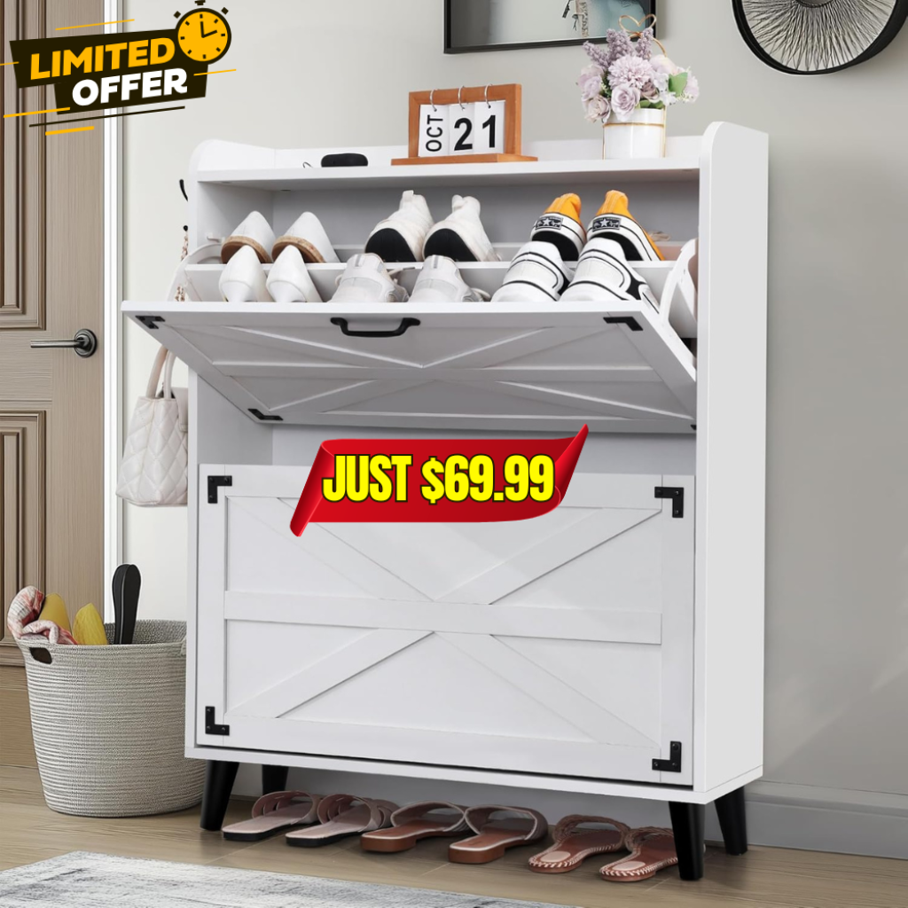 31″ Farmhouse Shoe Cabinet Promo: Save 50% at DealsFinders.com