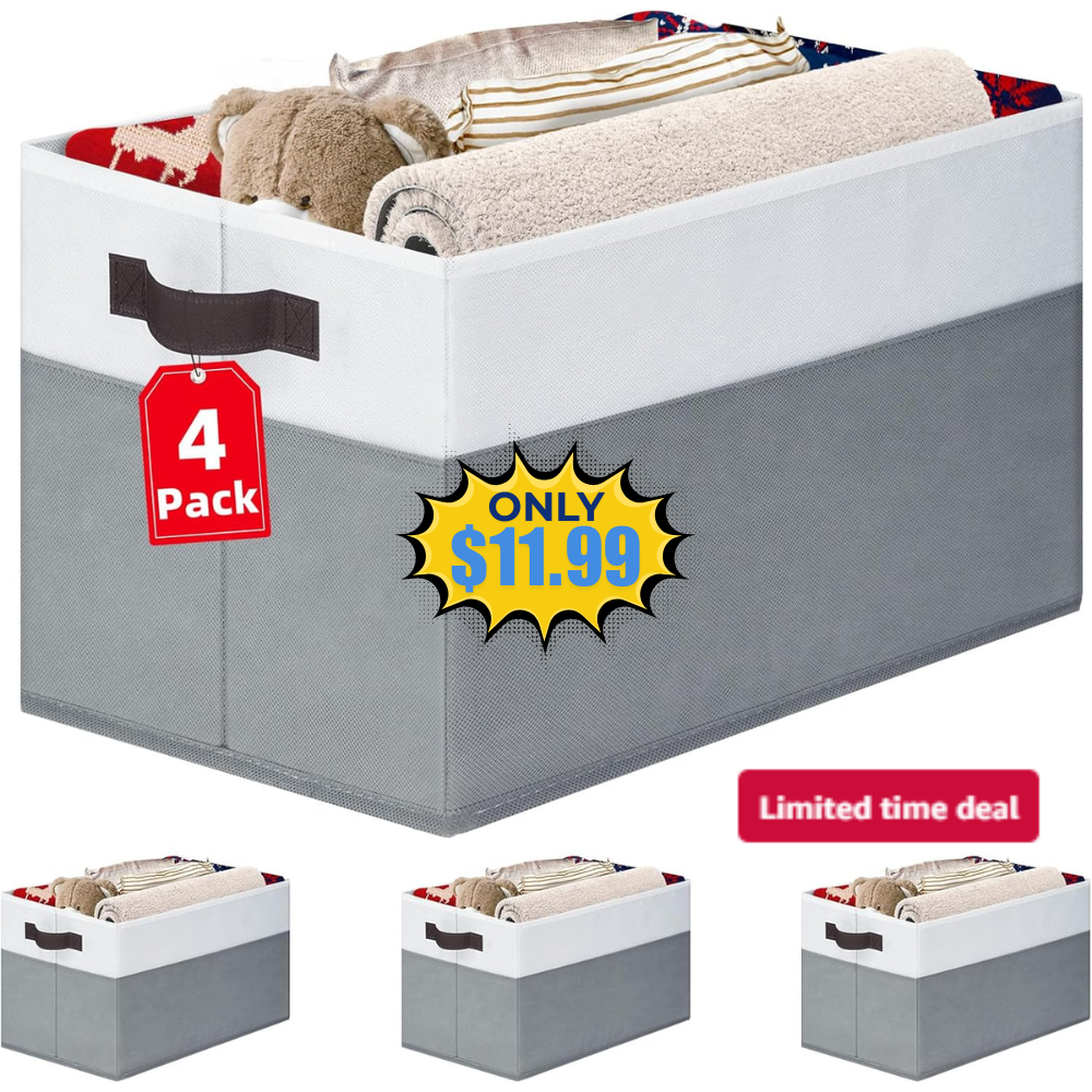4 Pack Large Closet Storage Baskets Bins Deal: Save 20% at DealsFinders.com