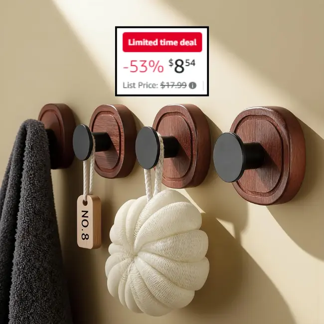 Looking for a convenient and stylish way to hang your bathroom towels? The 4 Pack Wooden Bathroom Towel Hooks are a great solution. With their removable design, you can easily attach them to your bathroom wall without drilling. And right now, you can save 53% on this set at DealsFinders.com. No coupon code is required, just shop now and take advantage of this limited-time offer. Don’t miss out on this great deal, shop the 4 Pack Wooden Bathroom Towel Hooks today!Grab this deal before it’s gone ?
