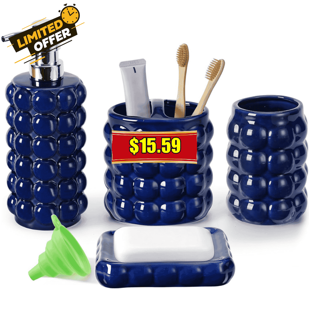 4 Piece Ceramic Bathroom Accessories Set Deal: Clip Coupon & Save Now