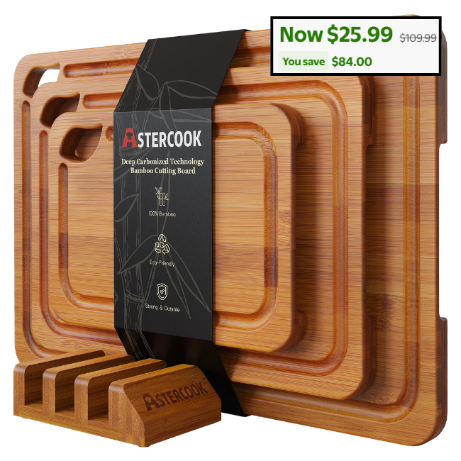 The 4-Pieces Wood Cutting Board is a great addition to any kitchen. Normally priced at $109.99, it's now available at Walmart for just $25.99. This amazing deal offers savings of $84.00 without the need for a coupon or promo code. Head to Walmart to take advantage of this incredible offer and upgrade your kitchen with this fantastic cutting board set.Walmart Plus Benefits