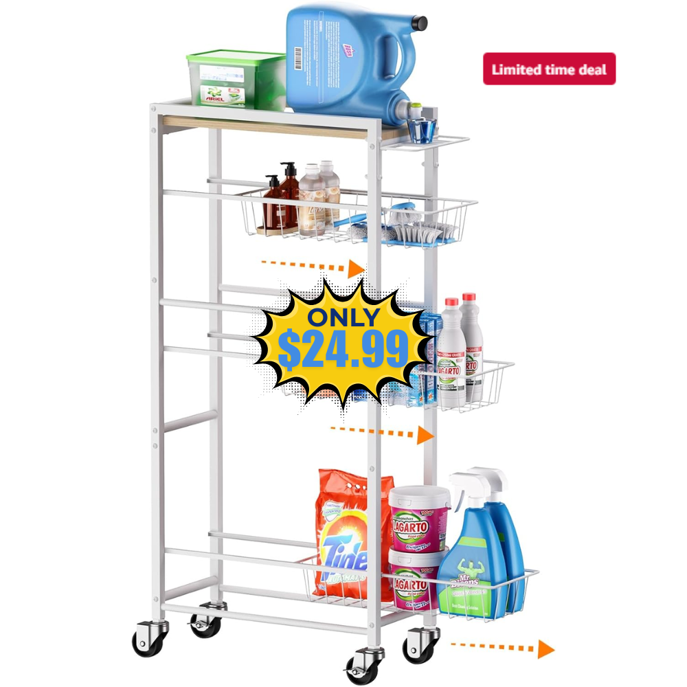 4 Tier Slim Rolling Storage Cart Deal: Save 50%