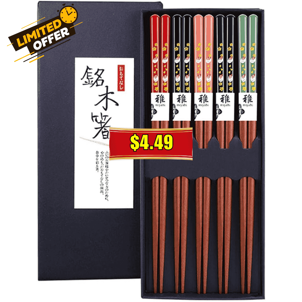 5 Pairs Natural Wooden Chopsticks Reusable Promo: Save with BRNYHW2F Code