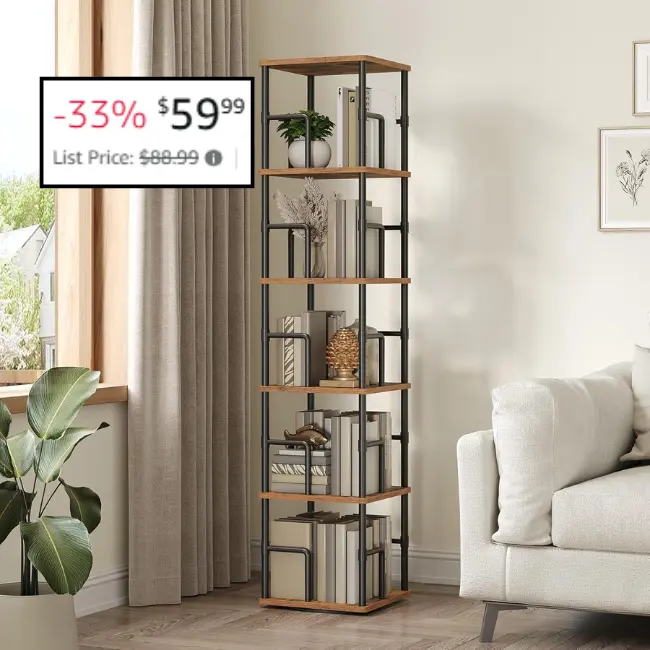 5-Tier Rotating Bookshelf Sale: Save 33% at DealsFinders.com