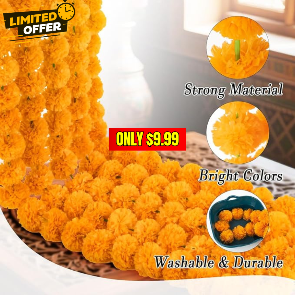 Save 50% off on this 5PCS 5 Feet Marigold Garland without even using a coupon or promo code! This is awesome price for this product!