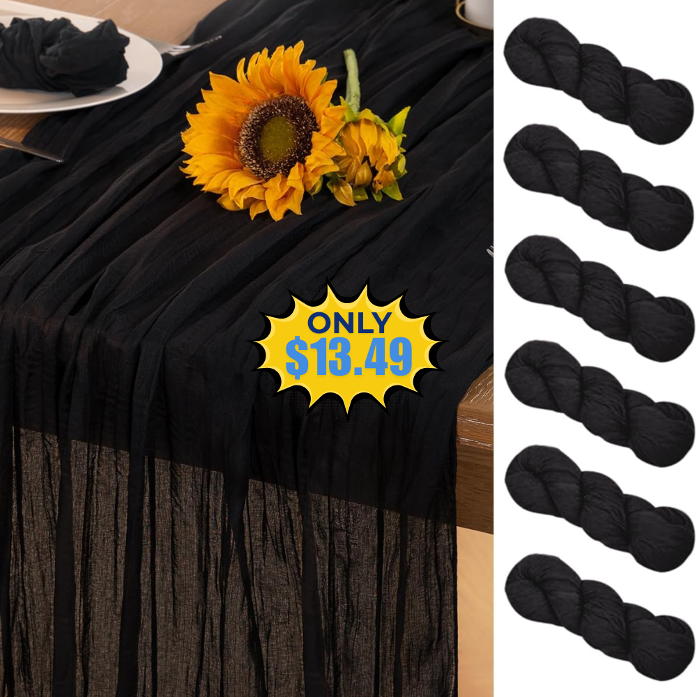 Save 50% off on this 6 Pack Black Cheesecloth Table Runners without even using a coupon or promo code! This is awesome price for this product!