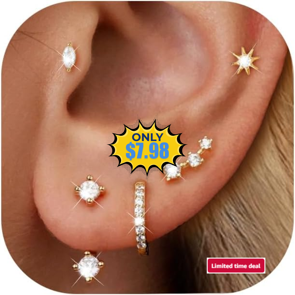 6 Pairs 14K Gold Plated Stud Earrings Deal: Save 53%