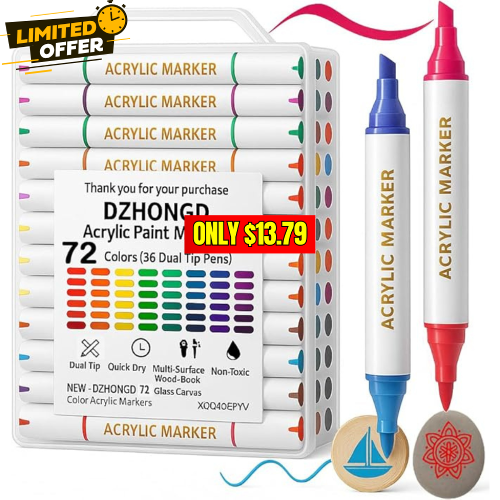 Save 50% off on this 72 Color Dual Tip Waterproof Acrylic Paint Markers without even using a coupon or promo code! This is awesome price for this product!
