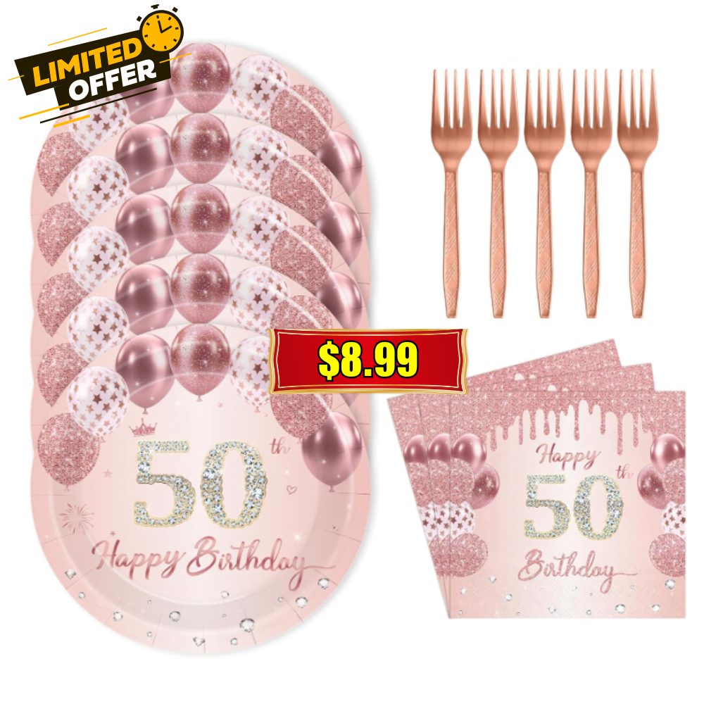 Rose Gold 50th Birthday Party Supplies Deal: 75 Pcs at Unbeatable Price