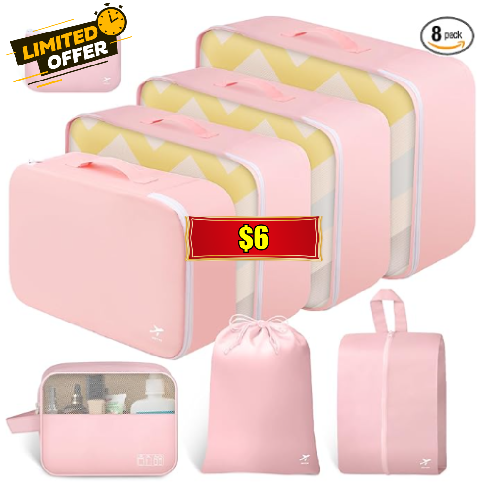 The 8-Pieces Light Packing Cubes are a must-have for any traveler. This set of packing cubes makes it easy to organize your luggage and find what you need quickly. You can save on this product without using a coupon or promo code, making it an even better deal. Shop now and get the 8-Pieces Light Packing Cubes at an amazing price.Grab this deal before it’s gone ?