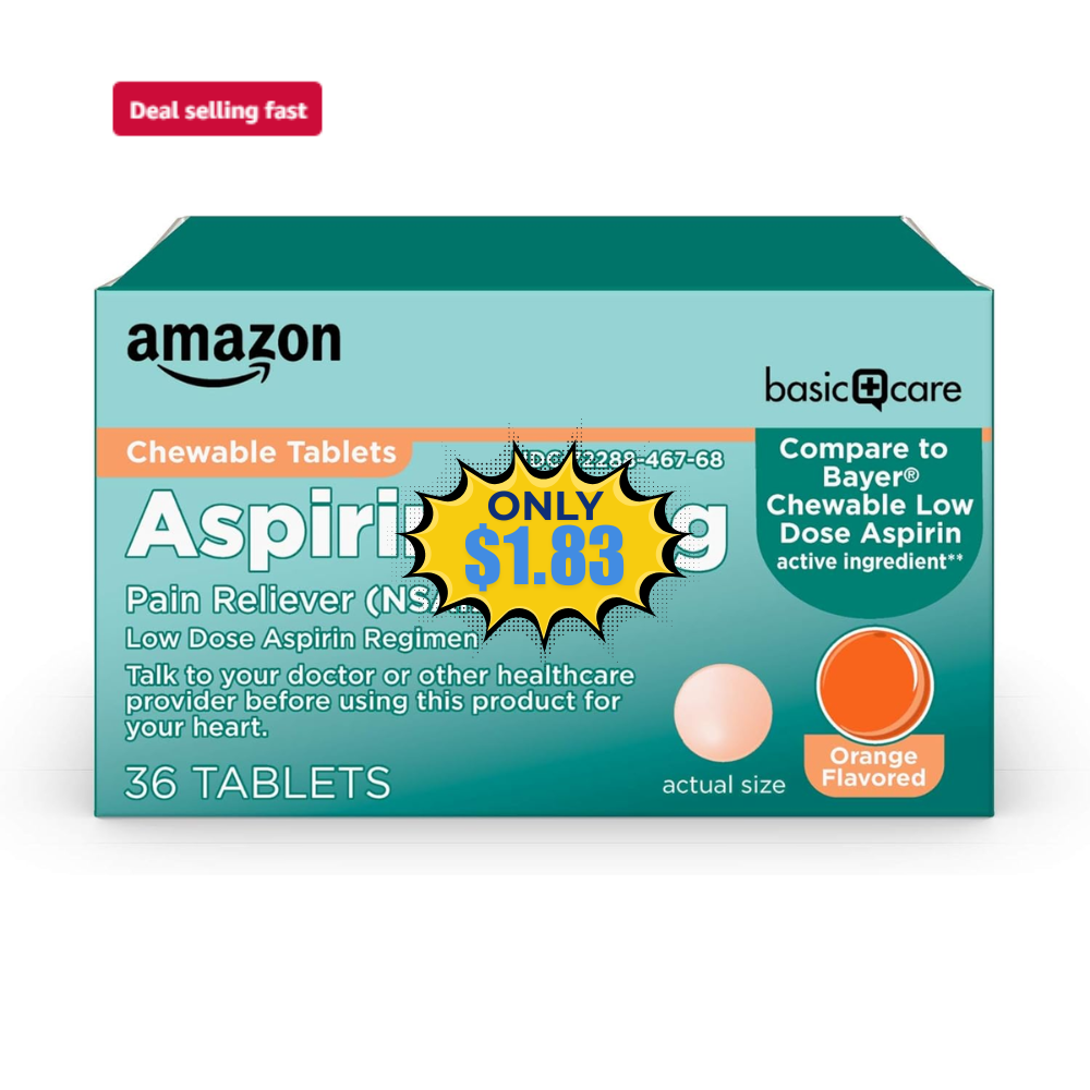 Save 52% off on this Amazon Basic Care Low Dose Aspirin 36 Count when you opt to Subscribe & Save (Free to cancel anytime)! This is awesome price for this product!Join our WhatsApp group, Telegram channel, and Facebook Group for kids’ deals, fashion deals, and other crazy deals.