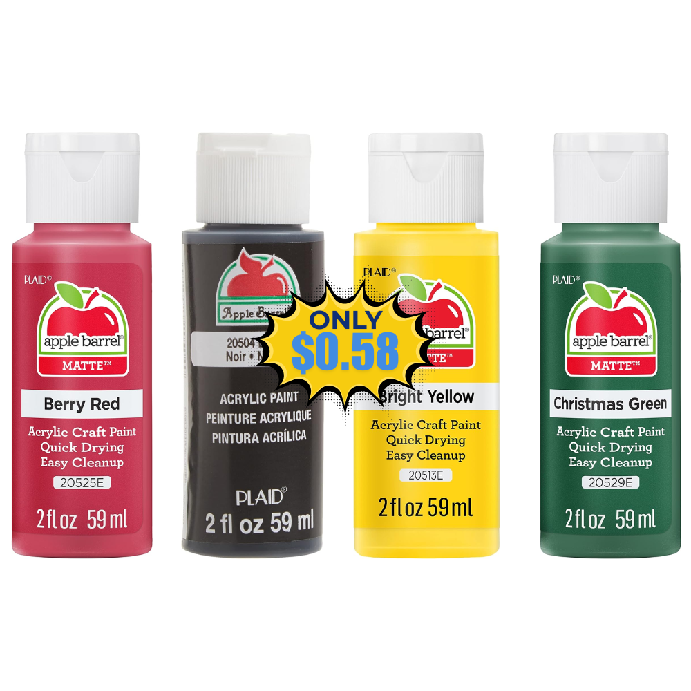 Save on this Apple Barrel Acrylic Paint in Assorted Colors without even using a coupon or promo code! This is awesome price for this product!Apple Barrel Acrylic Paint 2 Fl Oz (Pack of 1), Berry Red