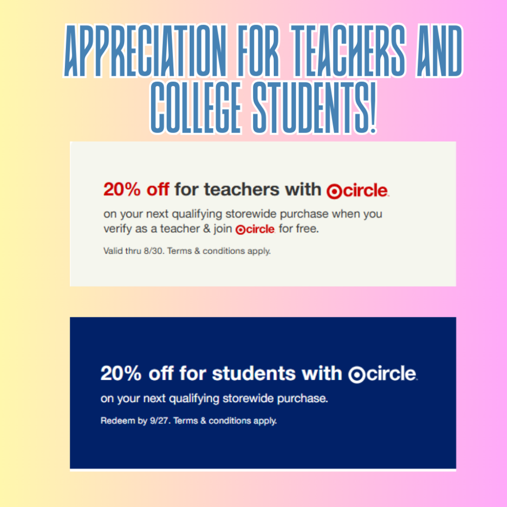 Jump over to Target where you can snag amazing savings on Appreciation for Teachers and College Students!! You can save without even using a coupon or promo code!