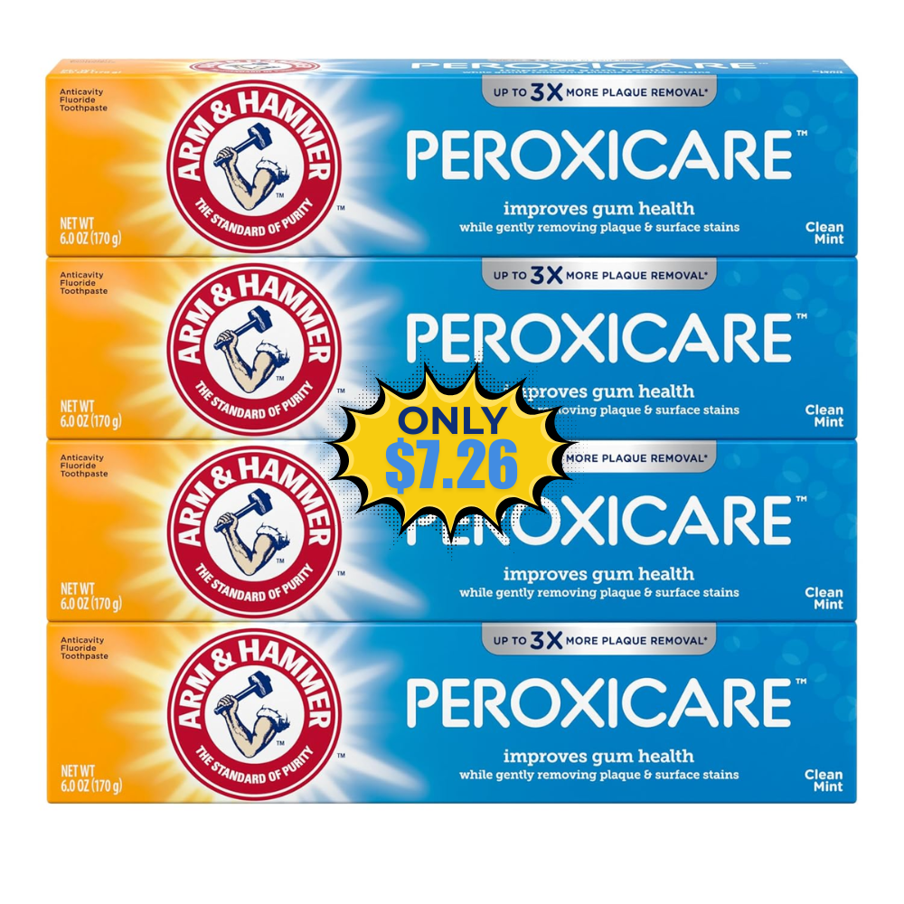 Save on this ARM & HAMMER Peroxicare Toothpaste Pack of 4 using a $6.00 coupon with Subscribe & Save (Free to cancel anytime)! This is awesome price for this product!