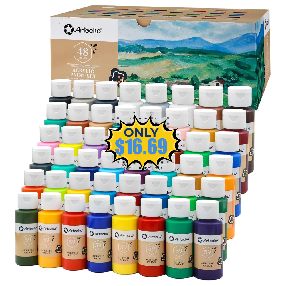 Save 44% off on this Artecho Acrylic Paint Set 48 Colors without even using a coupon or promo code! This is awesome price for this product!