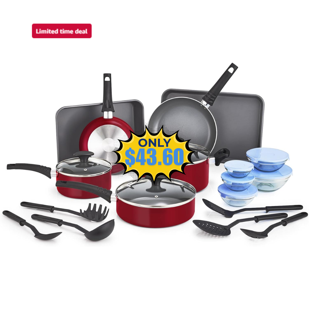 BELLA Cookware Set 21 Piece Red Sale: Save 45% at DealsFinders
