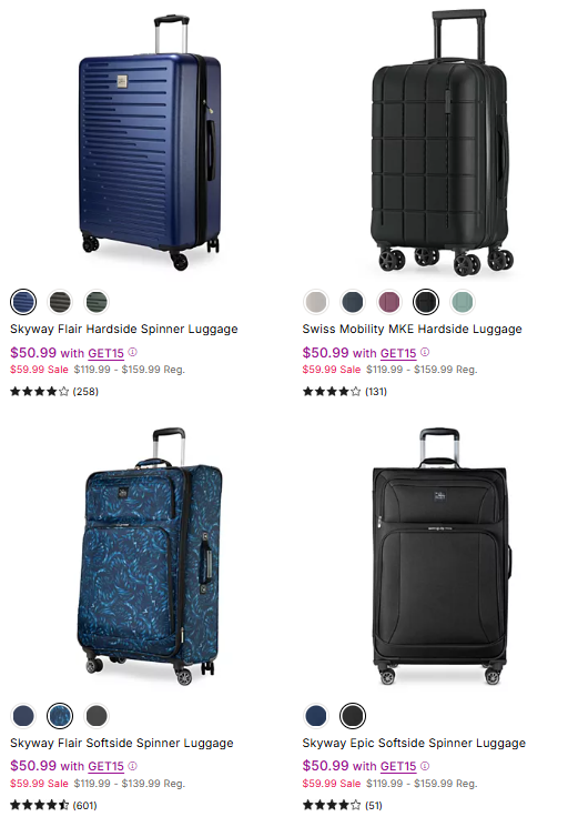 GET15Copy to ClipboardJump over to Kohl’s where you can snag amazing savings on this Black Friday Doorbuster Luggage for only $42.49 (regularly $119.99)! Use promo code GET15 + Extra 15% Off at checkout to get this amazing discount.Join our WhatsApp group, Telegram channel, and Facebook Group for kids’ deals, fashion deals, and other crazy deals.