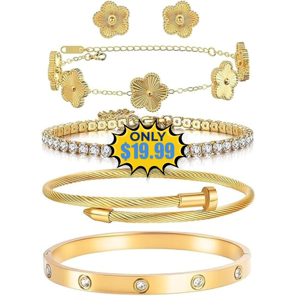 Save on this Bracelets and Earrings Set 5Pcs 18K Gold Plated. Apply 20% coupon to get this amazing discount. This is awesome price for this product!