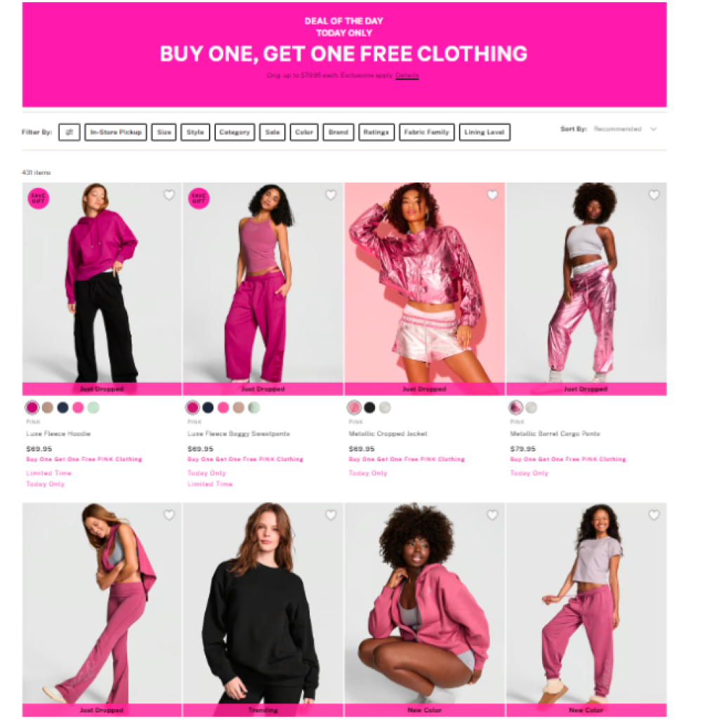 Jump over to Victoria Secret where you can snag amazing savings on Buy One, Get One Free on Everything! You can save without even using a coupon or promo code!