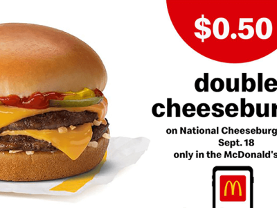 Share September 18, 2025 McDonald’s Double Cheeseburger Deal: 50¢ on National Cheeseburger Day McDonald's 0