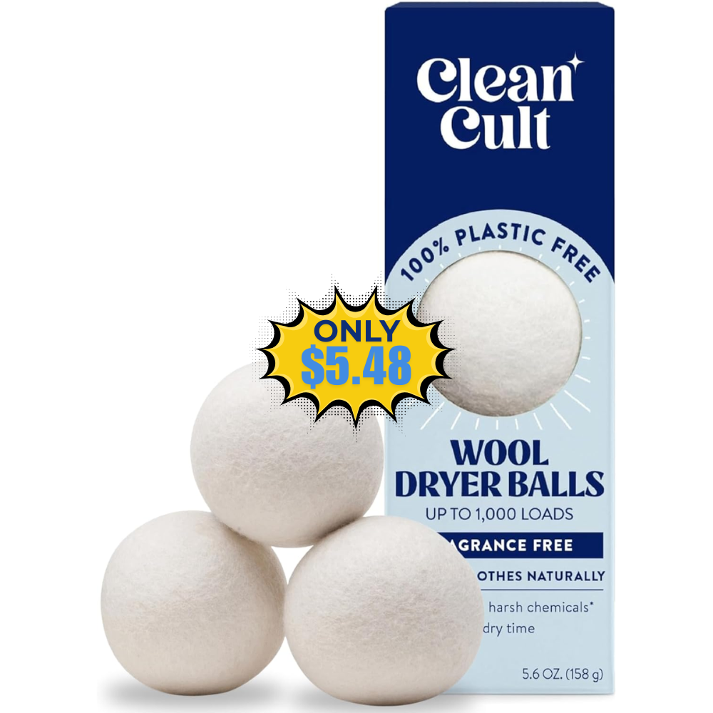 Save on this Cleancult Wool Dryer Balls (3 Count) using a $4 coupon with Subscribe & Save (Free to cancel anytime)! This is awesome price for this product!