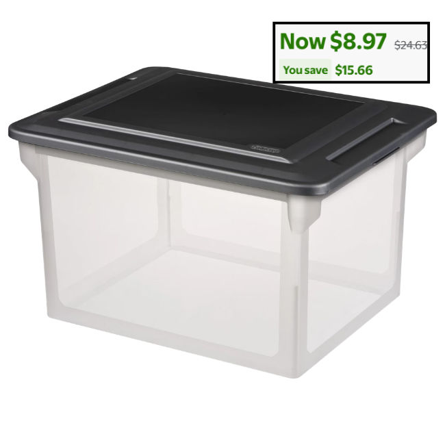 The Clear Plastic File Box with Black Lid is a great organizational tool. You can get it at Walmart for only $8.97, which is a significant savings of $15.66 from the regular price of $24.63. This is an amazing deal that requires no coupon or promo code, making it easy to save big on this useful product. The file box is perfect for keeping your important documents and papers organized and within reach.Walmart Plus Benefits