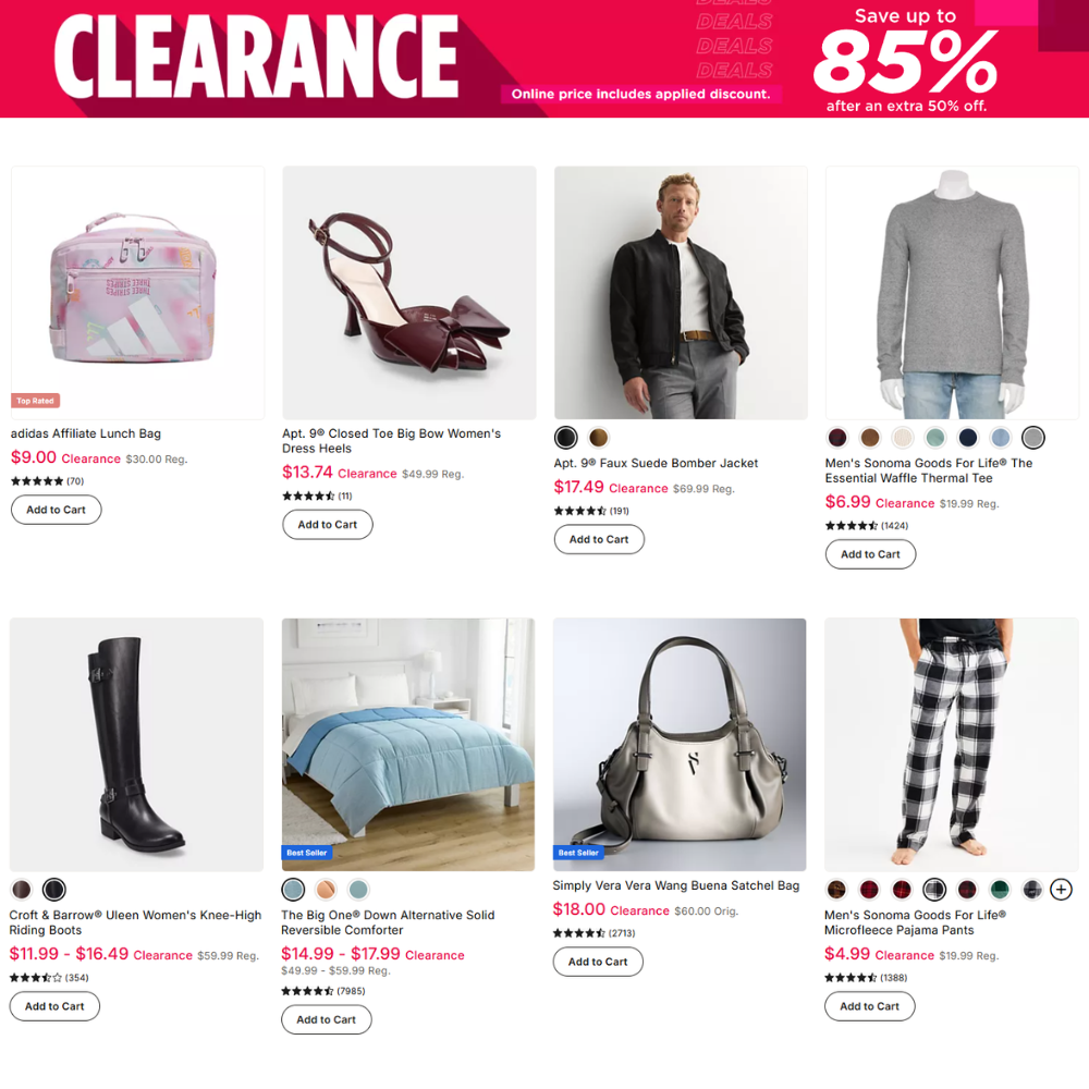 Kohl’s Clearance Sale: Up to 85% Off + Extra 50% Off