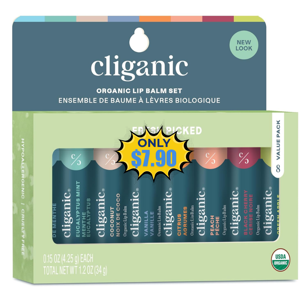 Cliganic Organic Lip Balm Set Sale: Save 34% with 15% Coupon at Cliganic