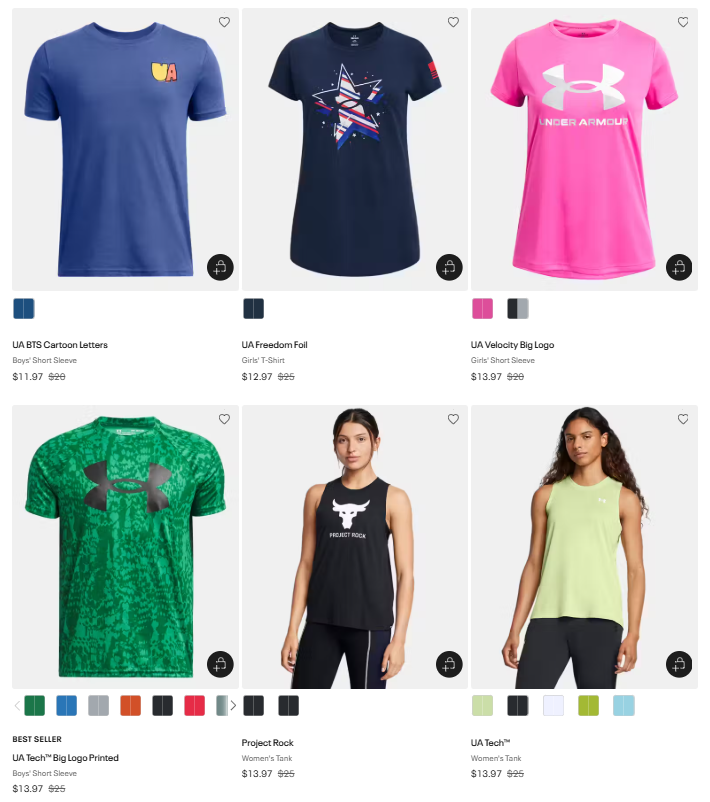 Jump over to Under Armour where you can snag amazing savings on this Clothing Sale under $25. You can save more even without using a coupon or promo code!
