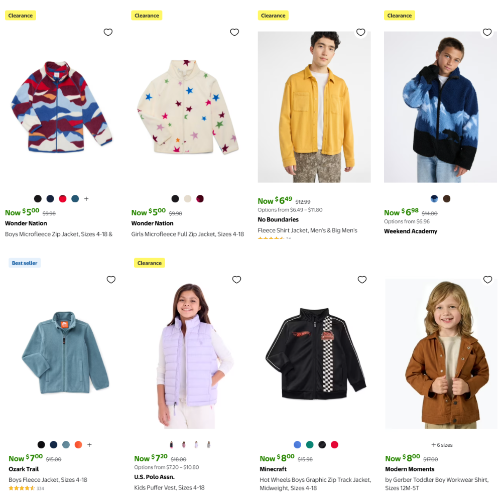 Walmart Coats and Jackets Clearance Sale: Save Up to $4.98 from $5.00