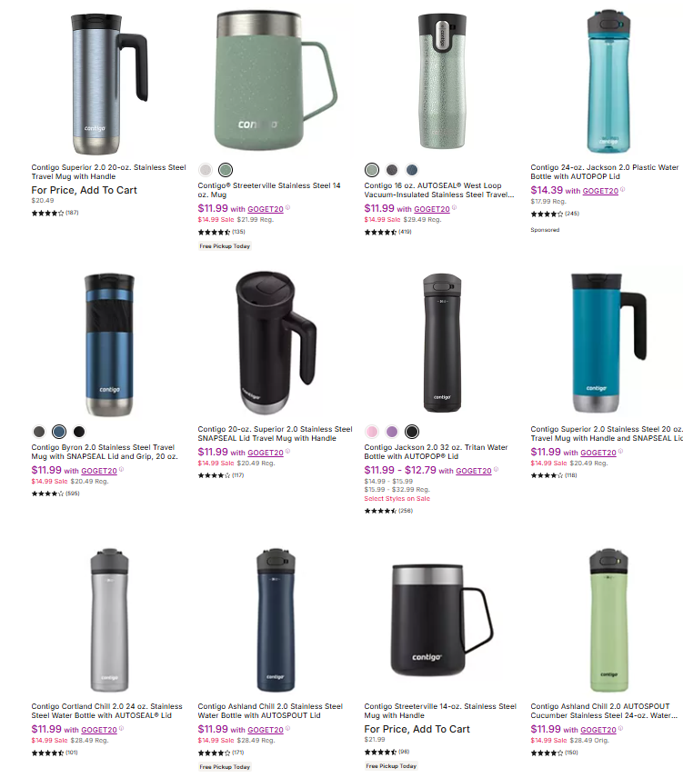 GOGET20Copy to ClipboardJump over to Kohl’s where you can snag amazing savings on this Contigo Mugs, Tumblers & Water Bottles from $11.59 (regularly $14.49)! Use promo code GOGET20 to get this amazing discount.Join our WhatsApp group, Telegram channel, and Facebook Group for kids’ deals, fashion deals, and other crazy deals.