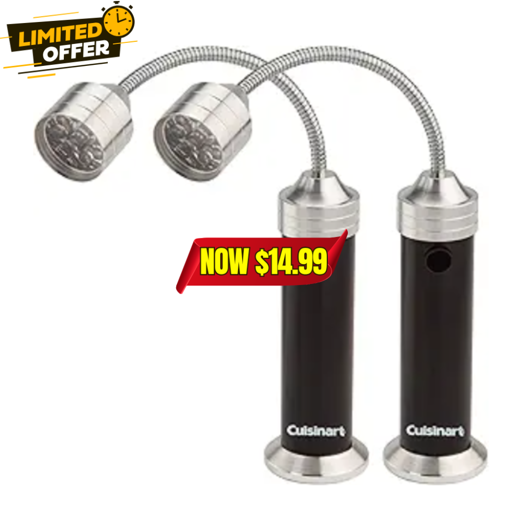 The Cuisinart Magnetic LED Mini Grill Lights 2-Pack is a must-have for any grill master. This set of two lights provides excellent illumination for nighttime grilling, making it easier to cook and enjoy your favorite meals. At DealsFinders, you can get this amazing product for an unbeatable price – save 40% off the regular price without needing a coupon or promo code. Whether you’re a seasoned grill enthusiast or just starting out, this deal is too good to pass up.