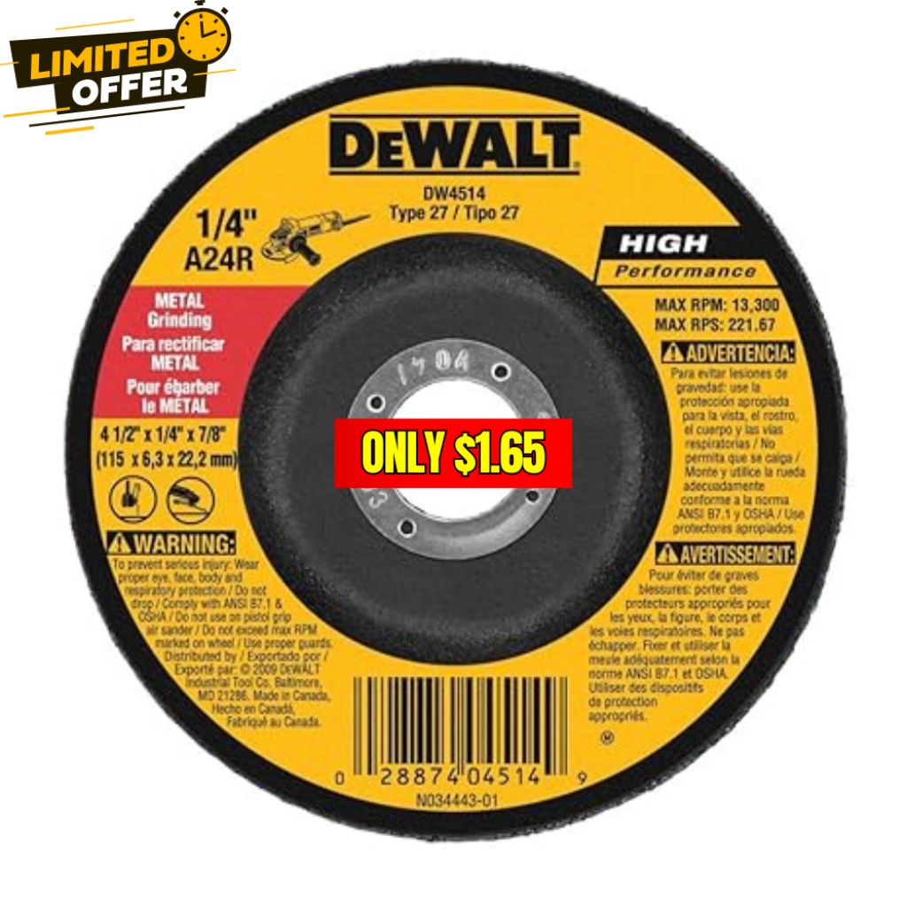 Save 48% off on this DEWALT 1/4″ Thick Grinding Wheel without even using a coupon or promo code! This is awesome price for this product!