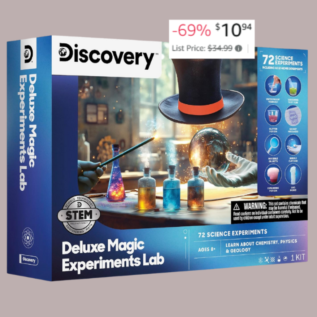 The Discovery Magic Science Lab 72 STEM Experiments Kit is a fantastic way to engage kids in science. With 72 experiments, it’s a comprehensive tool for learning and fun. Right now, you can save a whopping 69% off the regular price. This deal is available without any coupon or promo code, making it an easy and exciting purchase. Don’t miss out on this opportunity to inspire a love for science in your child!Grab this deal before it’s gone ?