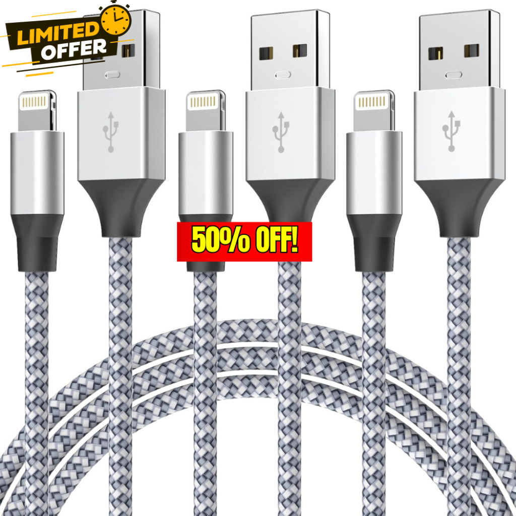 Durable iPhone Charger Cord 3Pack Sale: Save 50% at DealsFinders.com