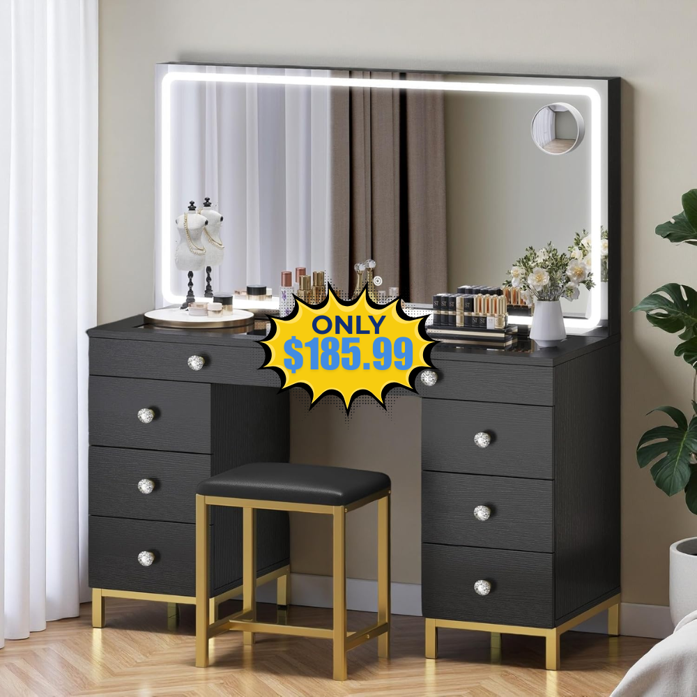 Save 23% off on this DWVO Black Vanity Desk with Mirror without even using a coupon or promo code! This is awesome price for this product!Join our WhatsApp group, Telegram channel, and Facebook Group for kids’ deals, fashion deals, and other crazy deals.