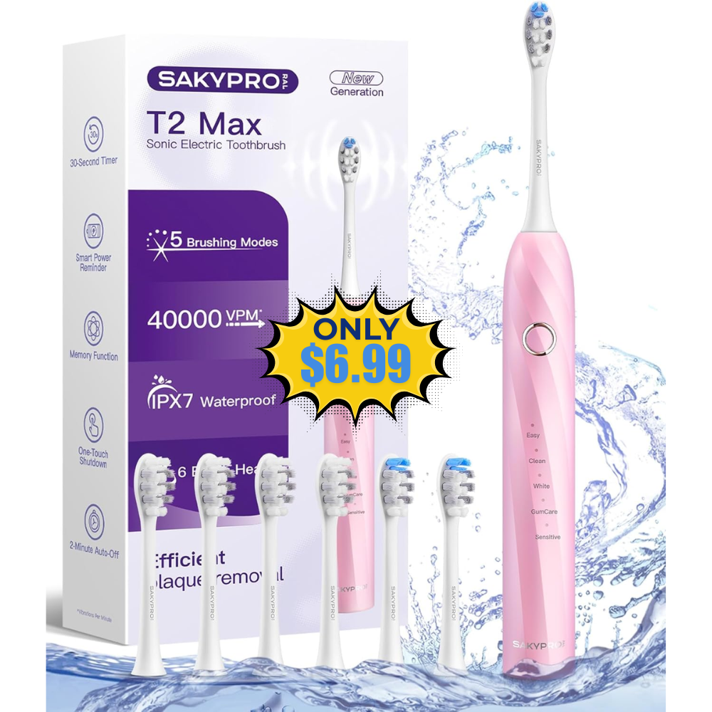 Save 59% off on this Electric Toothbrush, 6 Soft Brush Heads without even using a coupon or promo code! This is awesome price for this product!