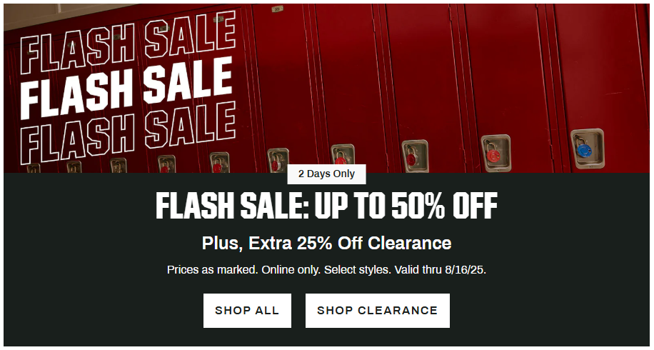 Jump over to Dick’s Sporting Goods where you can snag amazing savings on this Flash Sale Up to 50% Off + Extra 25% Off Clearance. You can save more even without using a coupon or promo code!